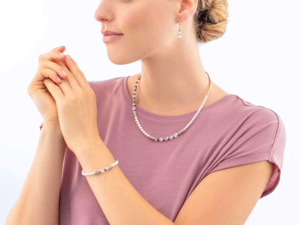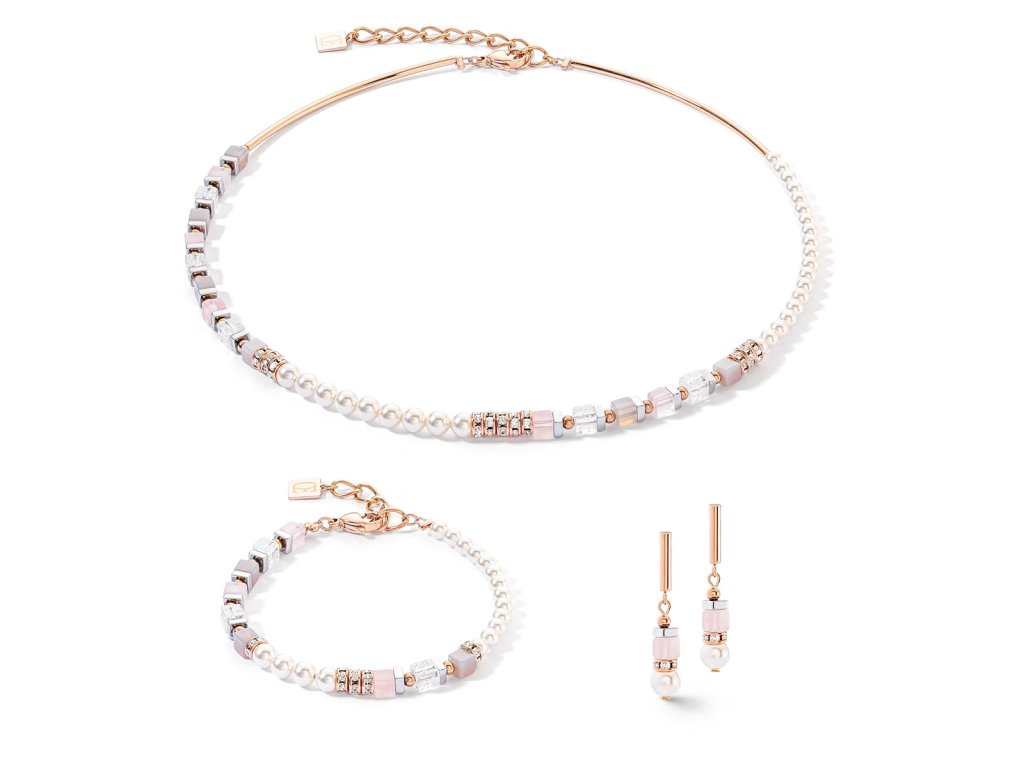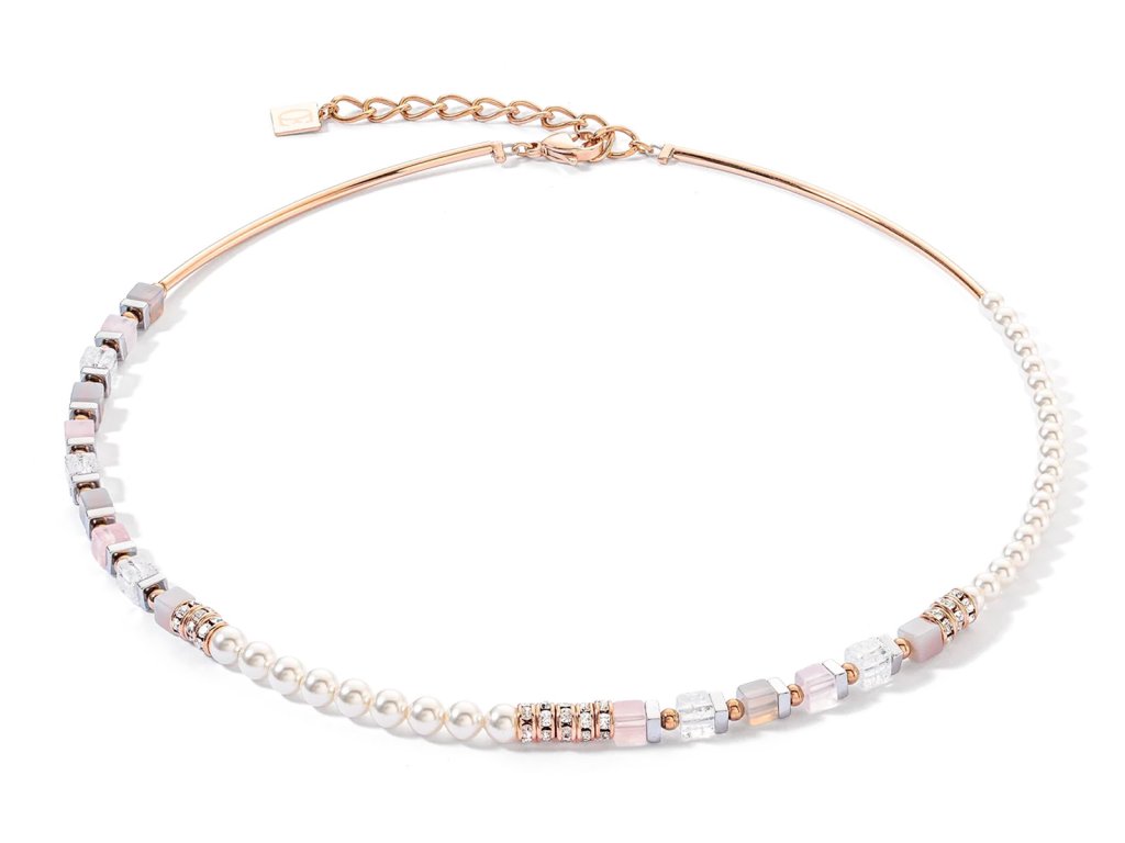 Asymetrický, hravý a neodolatelný – náhrdelník Precious Fusion Offset rose gold–ice pink je oslavou individuality a odvahy vystoupit z řady. Výrazný offset design kombinuje kostky z pravých kamenů – růženín, achát a křišťál – s třpytivými krystalovými perlami Swarovski® a jemnými lesklými akcenty.