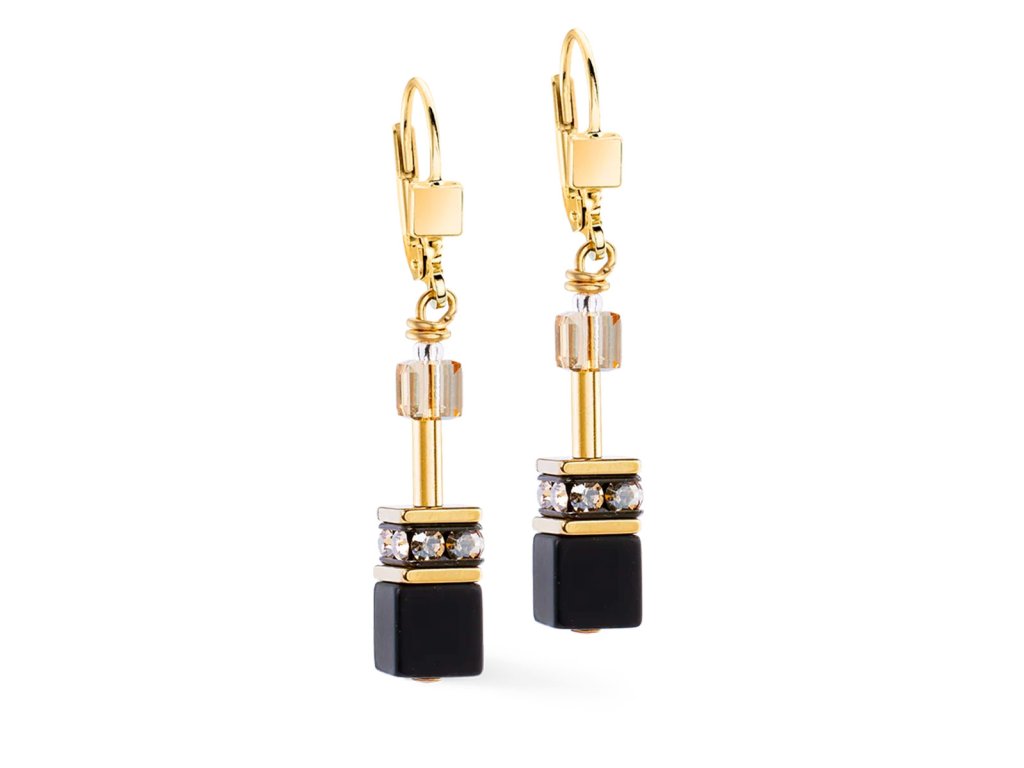 🖤 Náušnice Coeur de Lion GeoCUBE® Onyx black-gold – glamour černo-zlatého kontrastu