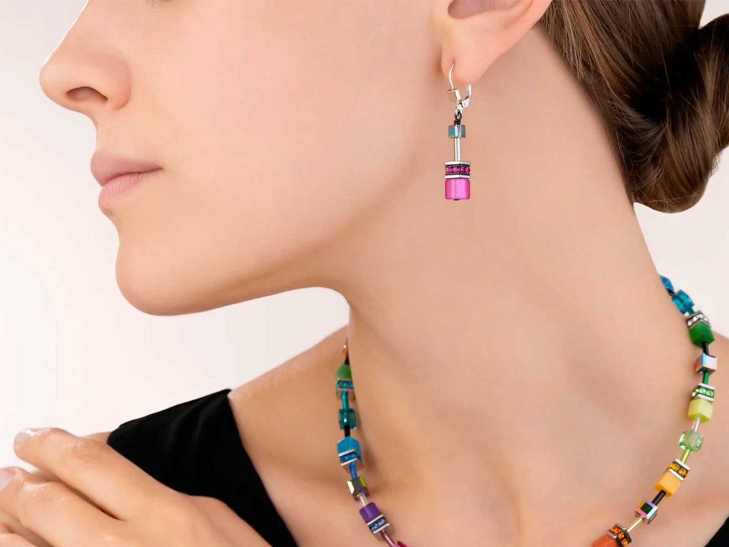 Sytá růžová a ikonický design – náušnice z kolekce GeoCUBE® přinášejí kombinaci odvážného barevného stylu a čistých geometrických tvarů, které se hodí ke každému outfitu.