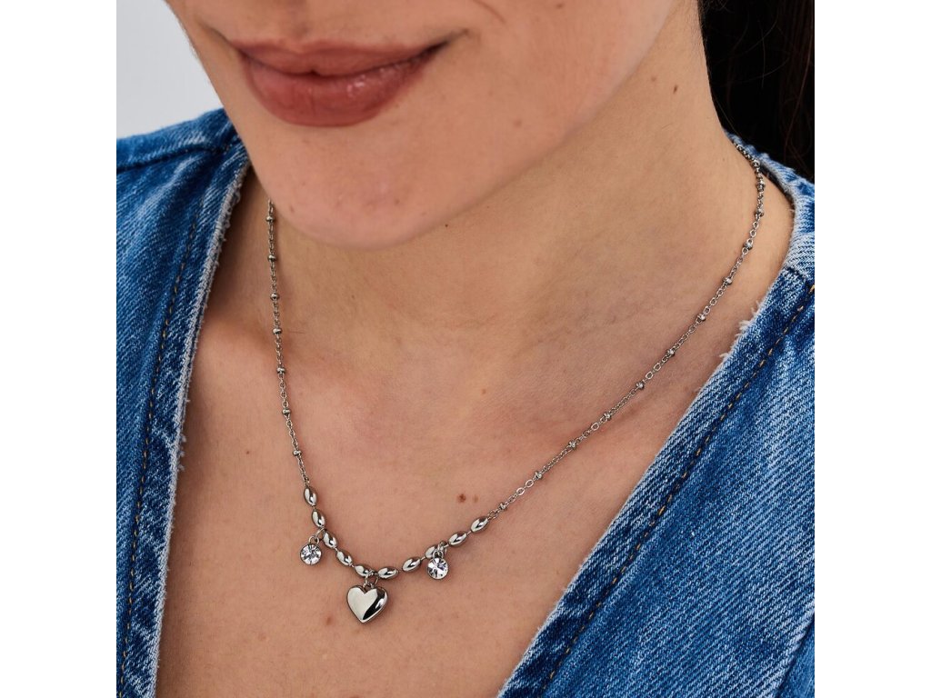 Jemný, přesto výrazný – náhrdelník Brosway Chakra BHKN161 je oslavou klidu, lásky a harmonie, ukrytý v lesku chirurgické oceli. Elegantní řetízek je zdobený třpytivými bílými krystaly a decentními korálky, které vytvářejí dokonale vyváženou kompozici. Dominantou celého šperku je přívěsek ve tvaru srdce, symbolizující lásku a něhu.