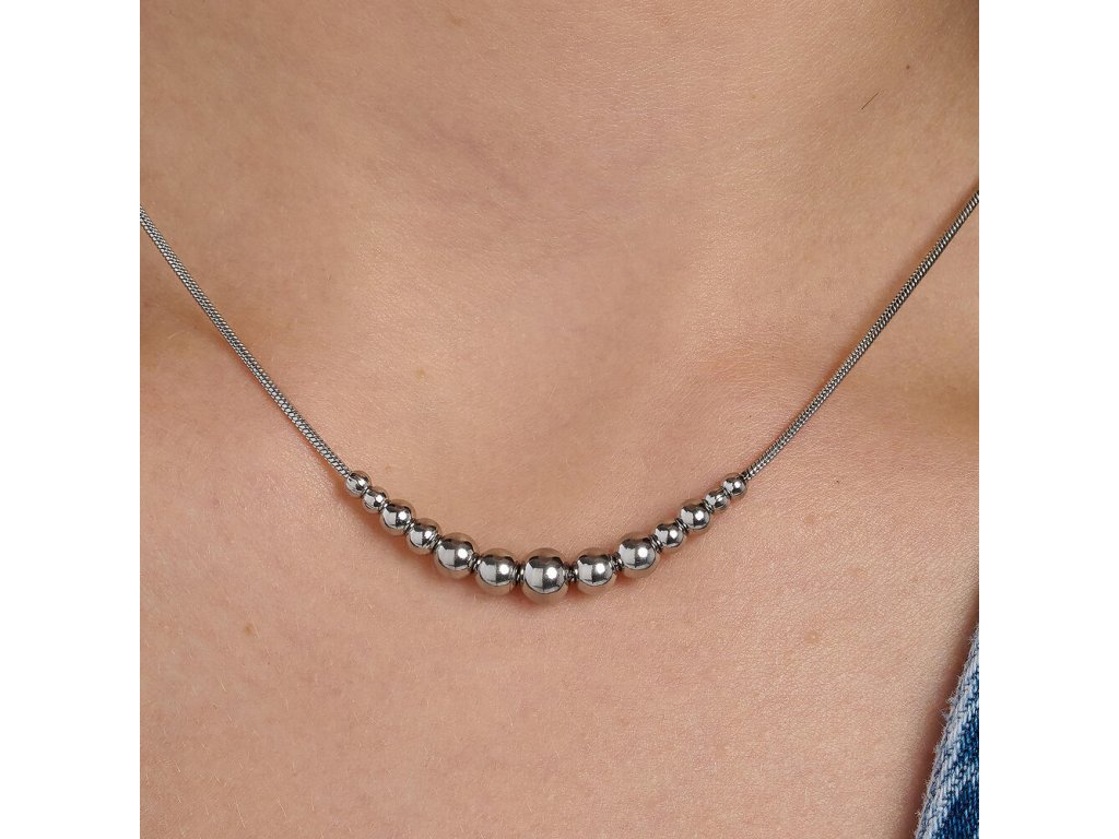 Půvabný náhrdelník Brosway Perfect BPC05 z kvalitní chirurgické oceli 316L osloví každou ženu, která miluje jemný lesk a nadčasový styl. Ocelový řetízek typu hádek nese středové lesklé korálky, které se při pohybu jemně třpytí a podtrhují eleganci dekoltu.
