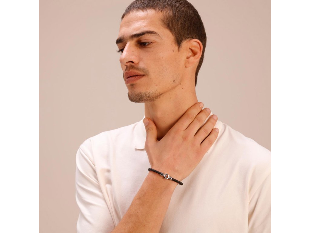 Náramek Brosway Knocker BKC13 je decentní, a přesto výrazný doplněk pro každého muže, který chce dát najevo svůj styl bez okázalosti. Pletený pásek z černé imitace kůže je zakončen prvky z chirurgické oceli 316L, zdobenými černým smaltem. Celek působí pevně, stylově a moderně – přesně tak, jak má vypadat pánský šperk.