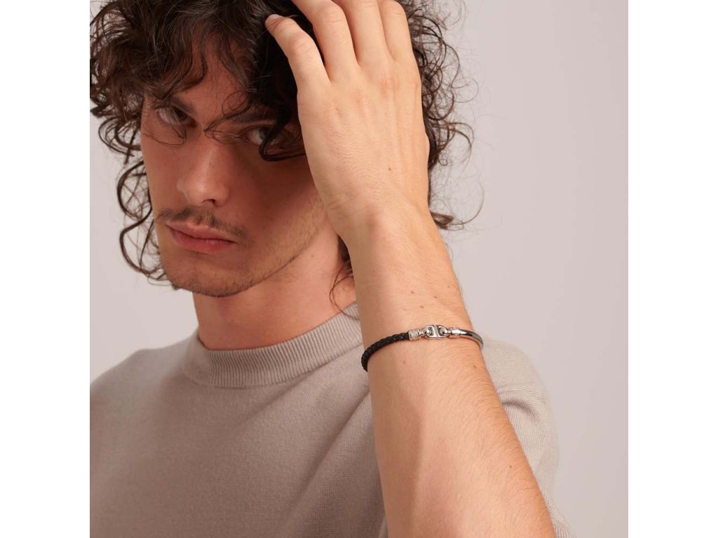 Náramek Brosway Knocker BKC19 je elegantním šperkem pro muže, kteří si potrpí na detail. Spojení lesklé chirurgické oceli 316L s černým pleteným páskem vytváří moderní a zároveň nadčasový design. Ocelové prvky jsou zdobeny jemným rytím, které dodává celku sofistikovaný nádech.