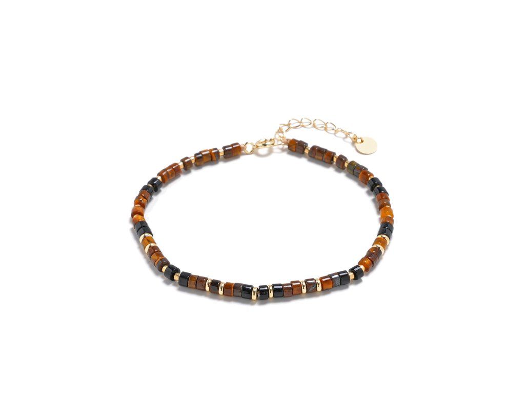 Náramek AURA s tygřím okem, černým achátem a korálky Miyuki je spojením síly, ochrany a vytříbené elegance. Zlatohnědé tóny tygřího oka se v něm prolínají s hlubokou energií černého achátu a jemnou precizností japonských korálků Miyuki. Celek doplňují zlacené stříbrné komponenty ze stříbra 925/1000, které náramku propůjčují hřejivý lesk, luxusní vzhled a nadčasový charakter.