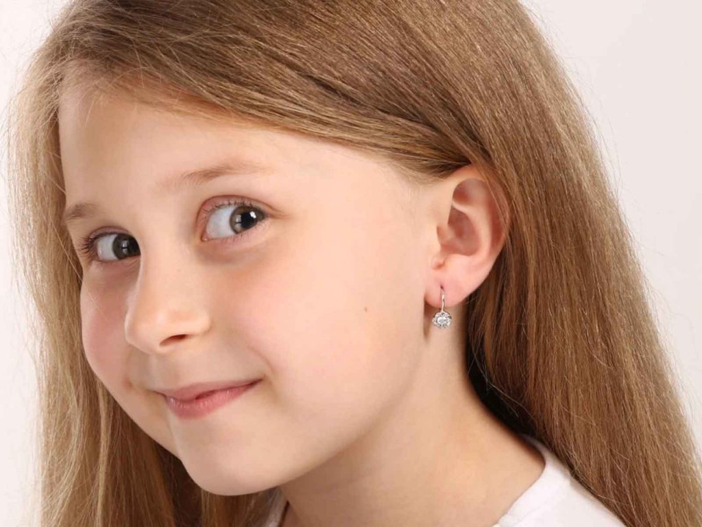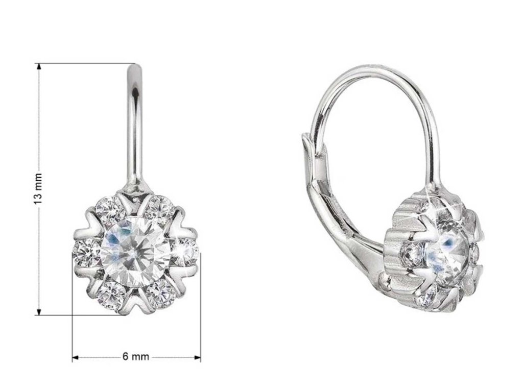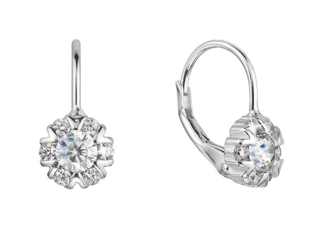 Náušnice 11474.1 crystal září jako křišťálová kapka v ranním slunci – uprostřed se třpytí čirý zirkon, obklopený jemným květinovým osazením z menších bílých kamínků. Šperk je vyrobený ze stříbra 925/1000 a jeho rhodiovaný povrch zaručuje dlouhotrvající krásu i ochranu proti zčernání.