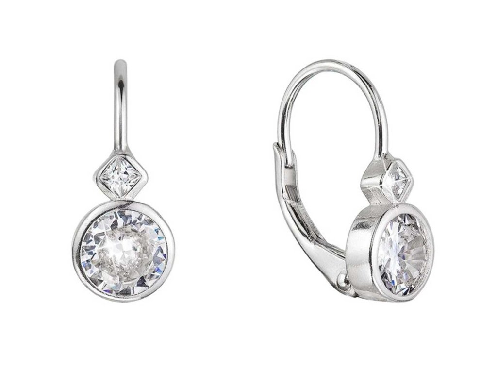 Visací náušnice 11479.1 v sobě nesou něžný lesk čistoty – září sněhobílým kulatým zirkonem, který doplňuje menší kamínek ve tvaru čtverce. Elegantní, ale zároveň dětsky hravé náušnice jsou vyrobeny ze stříbra 925/1000 s povrchovou úpravou rhodiem, jež chrání před zčernáním i poškrábáním.