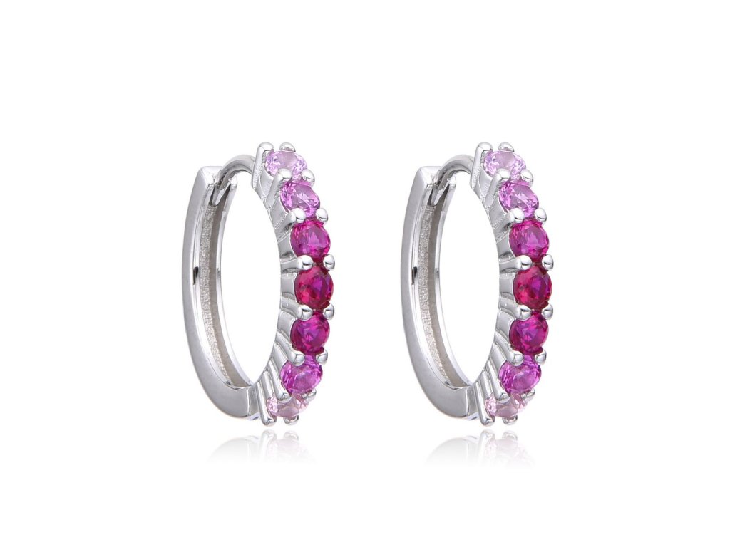 Tyto stříbrné kruhové náušnice září v odstínech růžových zirkonů, které symbolizují lásku, něhu a radost. Kombinace sytých a jemnějších tónů vytváří půvabný přechod barev, který působí elegantně i hravě zároveň. Nadčasový kruhový tvar dělá z těchto náušnic ideální doplněk pro všední den i slavnostní okamžiky.