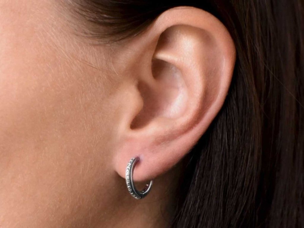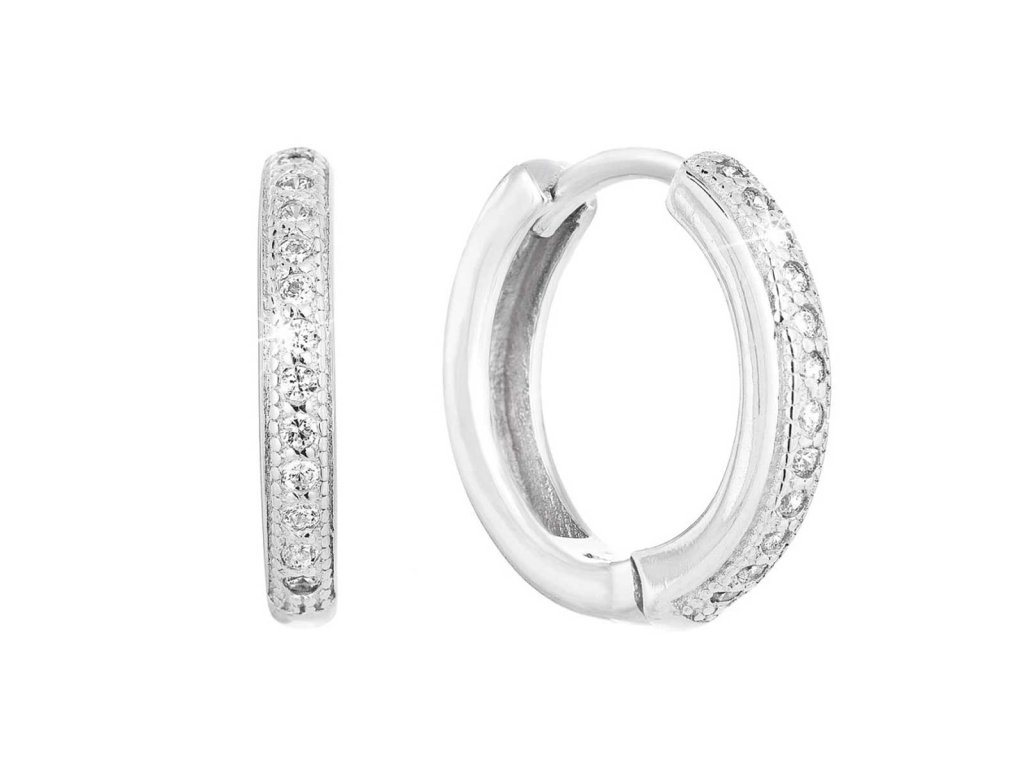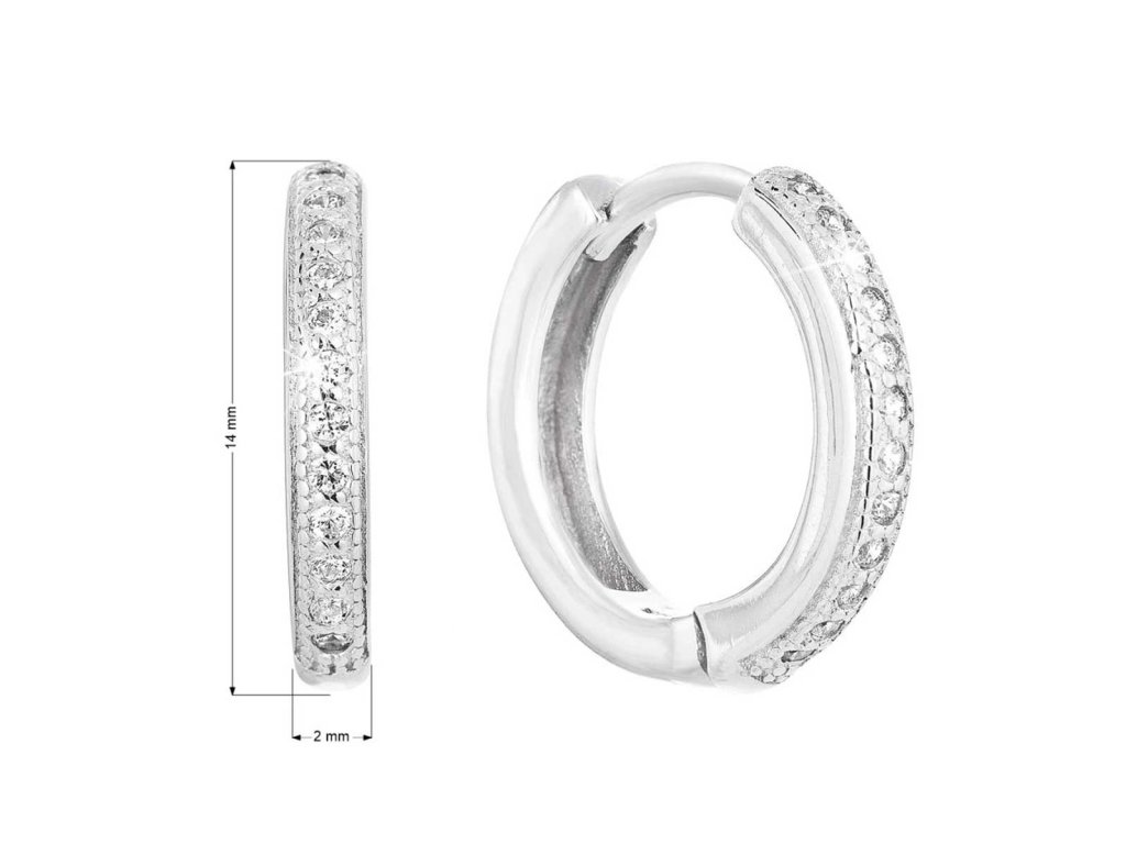 Tyto jemné náušnice jsou symbolem elegance a decentního půvabu. Z ryzího stříbra vznikl kruhový design, jehož povrch zdobí pás čirých zirkonů v barvě crystal, které dodávají šperku jemný třpyt. Rhodiovaná úprava chrání náušnice před zčernáním a zajišťuje jejich dlouhotrvající lesk. Díky velikosti 14 × 2 mm působí decentně, pohodlně se nosí a hodí se pro každodenní i slavnostní příležitosti.