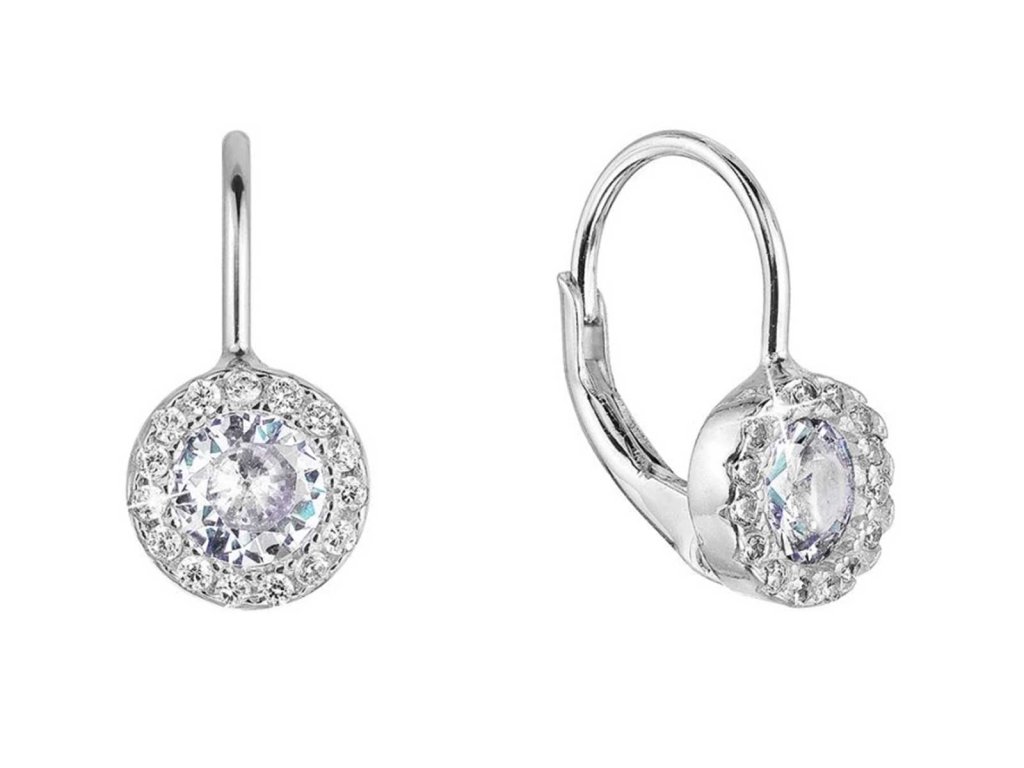 Visací náušnice 11475.1 jsou jako drobný zázrak – září čistotou a jemností při každém pohybu. Uprostřed kulatého motivu se třpytí větší čirý zirkon, který je obklopen korunkou drobných zirkonků – celek působí jako rozzářená hvězdička. Vyrobeny jsou ze stříbra 925/1000 s rhodiovaným povrchem, který chrání před zčernáním a poškrábáním. Díky praktickému zapínání na klapku se snadno nasazují a pohodlně drží. Náušnice neobsahují nikl – tedy jsou vhodné i pro citlivé dětské ouško.