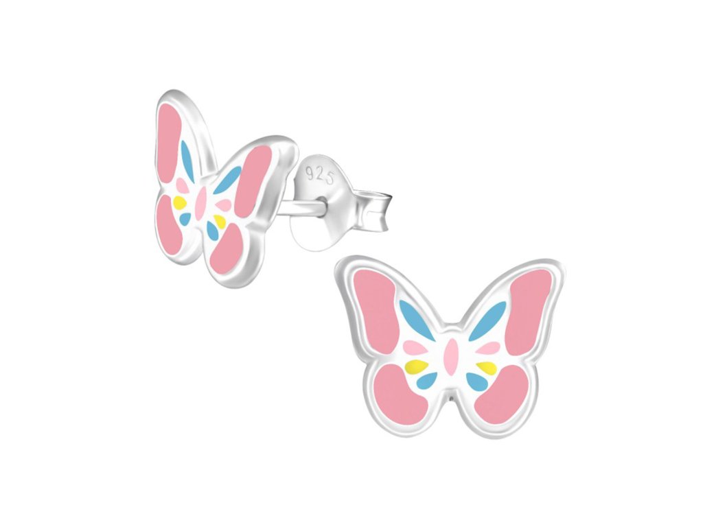 🦋 Dětské stříbrné náušnice – Motýlek pastelový