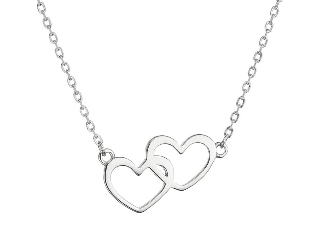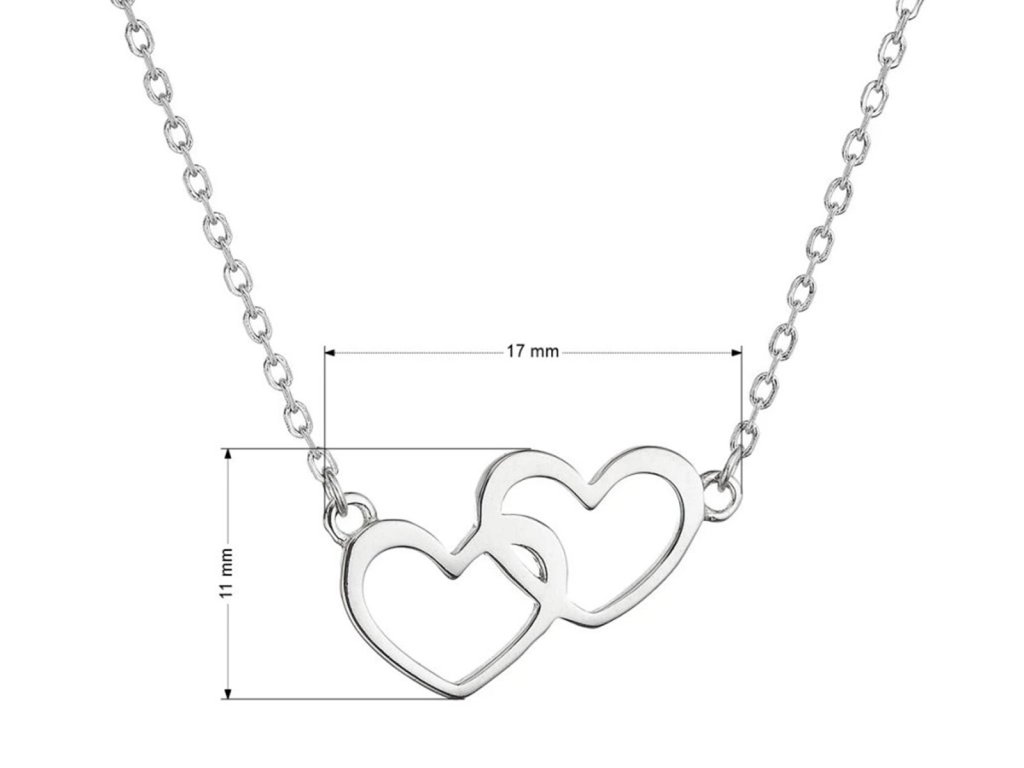 Dvě srdce, která se navždy propojila, symbolizují lásku, věrnost a něžné pouto. Tento jemný stříbrný náhrdelník je ideálním dárkem pro milovanou osobu, ale i krásným doplňkem pro každý den. Minimalistický design dodává šperku nadčasovou eleganci a rhodiovaný povrch chrání stříbro před zčernáním.
