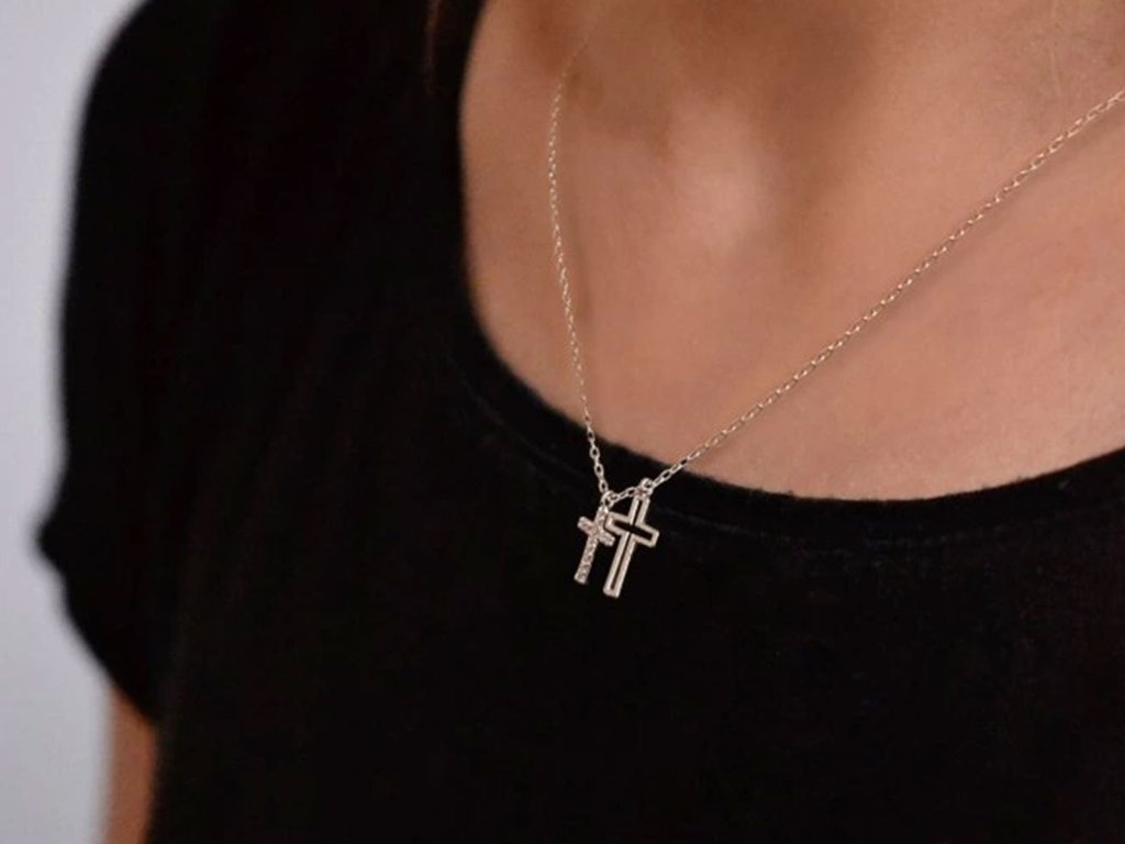Náhrdelník, který propojuje symbol víry s jemným třpytem světla. ✨🤍