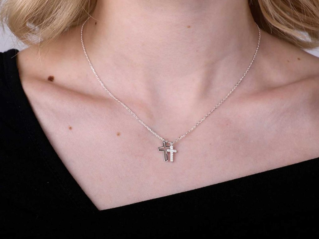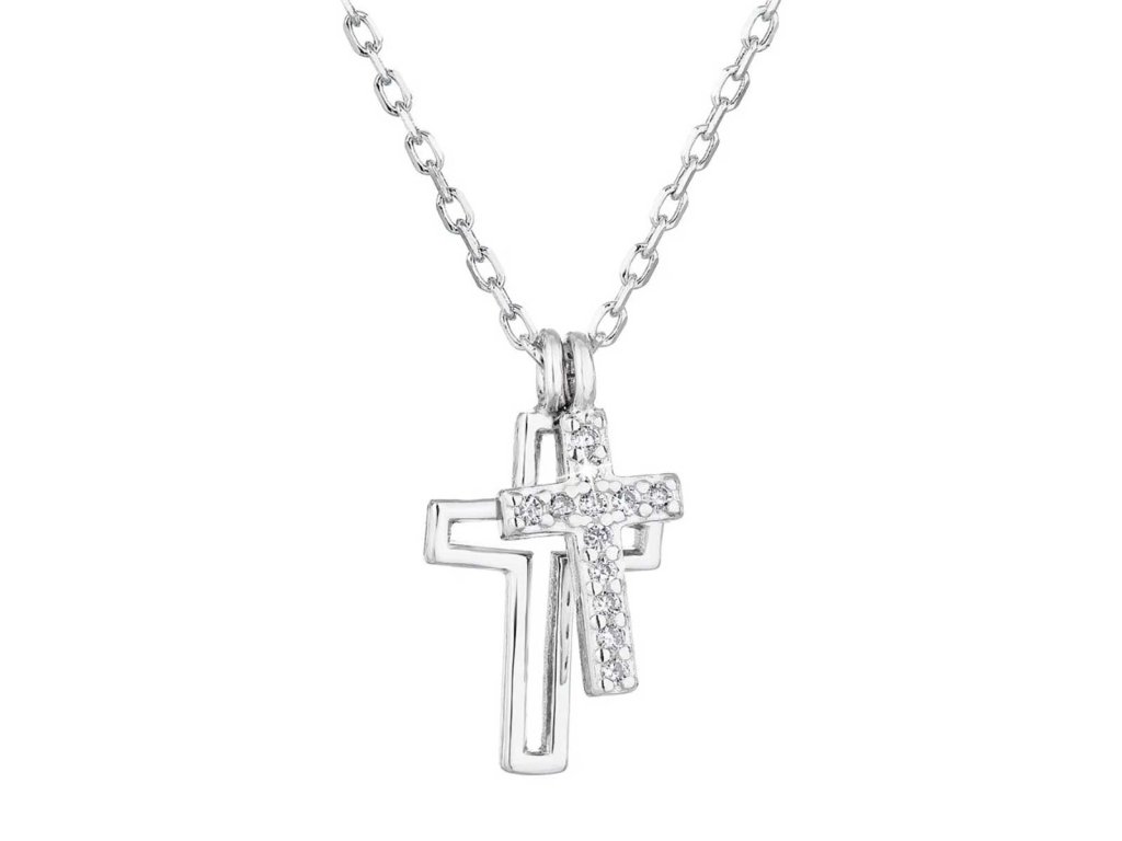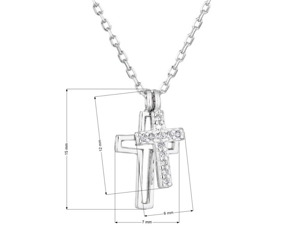 Tento jemný náhrdelník je symbolem víry, naděje a ochrany. Z ryzího stříbra vznikl šperk s decentním přívěskem křížku, osazeným čirými zirkony v barvě crystal, které mu dodávají zářivý třpyt. Rhodiovaná úprava zajišťuje dlouhotrvající lesk a chrání povrch před zčernáním. Díky nastavitelné délce (42 + 3 cm) je univerzálním doplňkem pro každodenní nošení i výjimečné příležitosti.