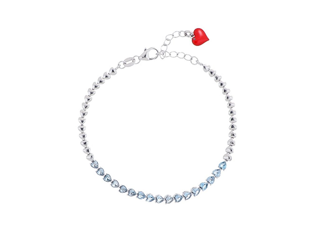 🌊 Náramek Chic Blu z kolekce Scaldasole je jemným šperkem, který v sobě nese svěžest mořských vln. Zářivé modré zirkony v kombinaci s drobnými srdíčky tvoří romantický design, který podtrhne vaši jedinečnost a vnese do vašeho dne kousek radosti.