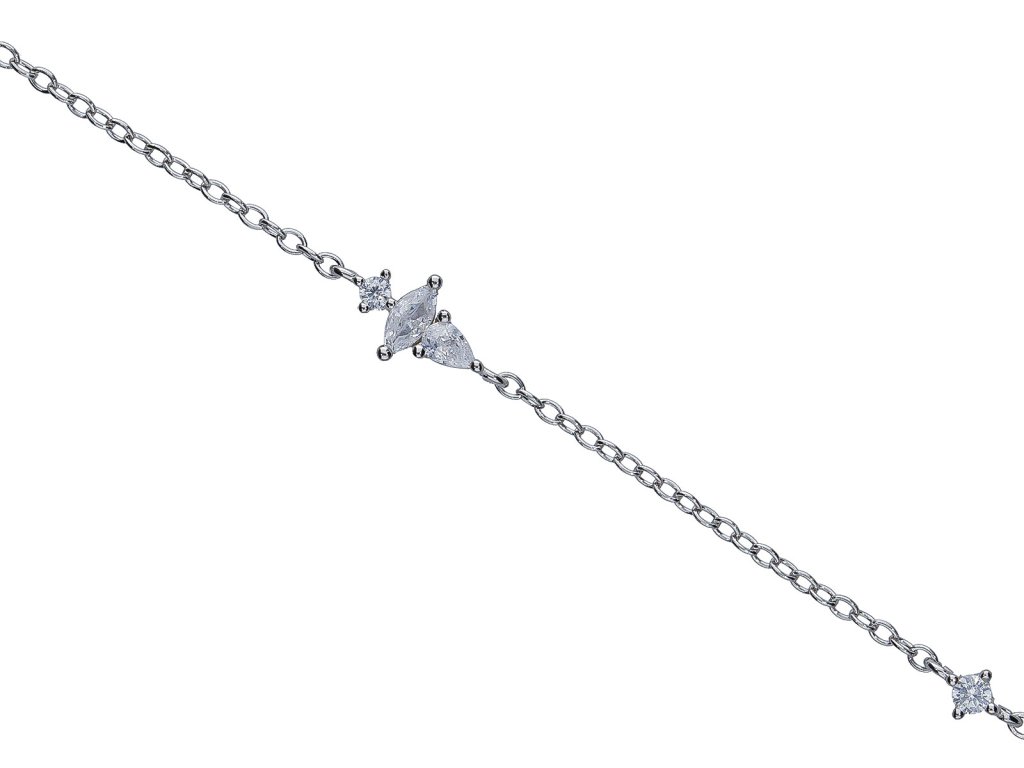 Stříbrný náramek vyniká precizním zpracováním a harmonickou kombinací kapkovitých a kulatých kamenů. Zasazené zirkony jsou pevně uchyceny a díky jemnému řetízku působí šperk lehce, čistě a velmi sofistikovaně. Ideální volba pro každodenní nošení i elegantní příležitosti.