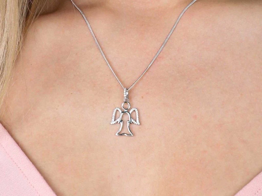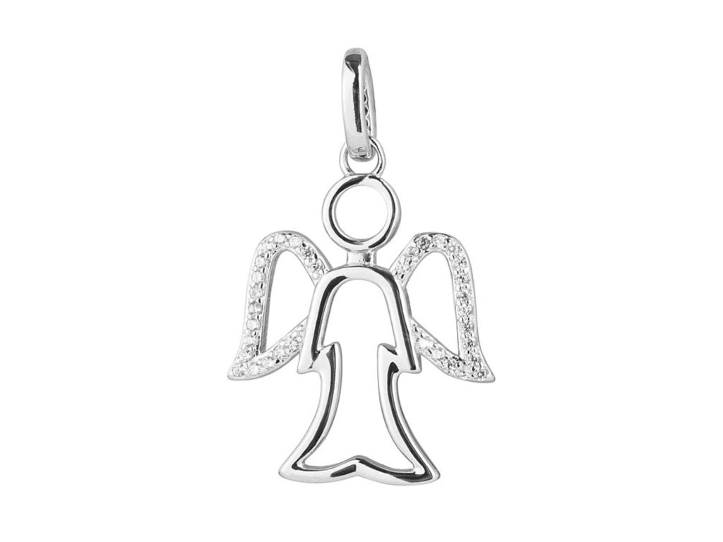 Tento jemný přívěsek je symbolem víry, naděje a ochrany. Z ryzího stříbra vznikl šperk v podobě anděla, jehož křídla jsou osázena čirými zirkony v barvě crystal, které se nádherně rozzáří při každém pohybu. Rhodiovaná úprava chrání povrch před zčernáním a udržuje přívěsek stále zářivý. Elegantní design (27 mm) z něj činí krásný talisman pro každodenní nošení i výjimečné příležitosti.