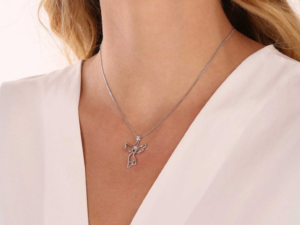 Tento jemný přívěsek je symbolem ochrany, víry a lásky. Z ryzího stříbra vznikl šperk s elegantní siluetou anděla, uprostřed zdobeného čirým zirkonem v barvě crystal, který se třpytí jako paprsek světla. Rhodiovaná úprava chrání přívěsek před zčernáním a zajišťuje jeho krásný lesk. Díky svému půvabnému designu se stane výjimečným talismanem pro každý den i slavnostní chvíle.