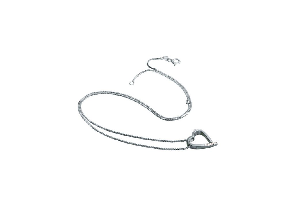 Přívěsek Just Add Love Memories okouzlí čistým obrysem srdce, který působí moderně a zároveň velmi něžně. Jeden z boků je zdoben čtyřmi třpytivými kameny – 4× přírodní diamant (0,005 ct) – které dodávají šperku luxusní a autentický lesk.