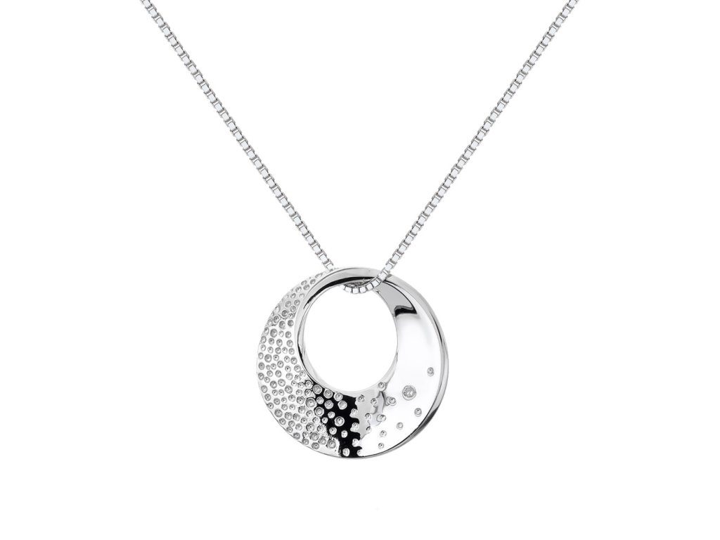 Přívěsek Quest zaujme výrazným kulatým tvarem o rozměru 22 × 22 mm, jenž symbolizuje jednotu a nekonečno. Kombinace hladkého lesklého povrchu a strukturované části vytváří zajímavý vizuální kontrast. Jemný detail v podobě pravého přírodního diamantu (0,01 ct) dodává šperku luxusní třpyt a podtrhuje jeho výjimečnost.