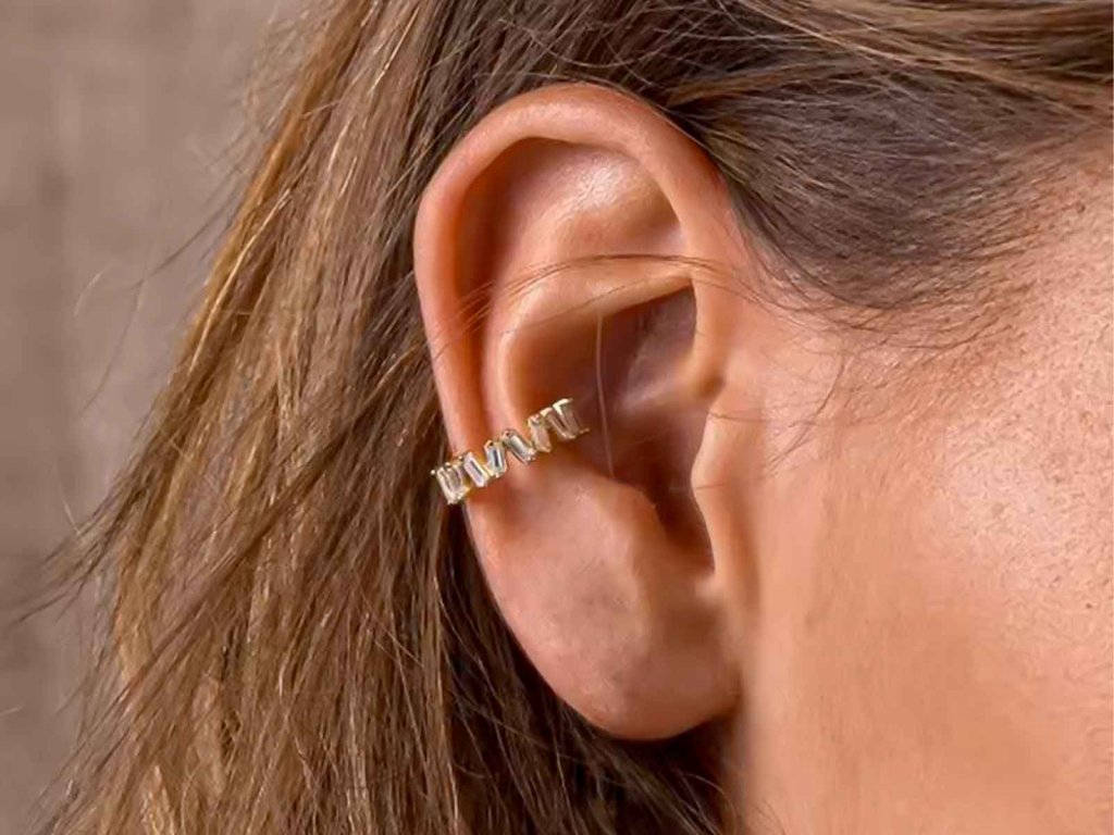 ✨ Pozlacený stříbrný ear cuff s obdélníkovými zirkony – moderní třpyt v elegantní linii