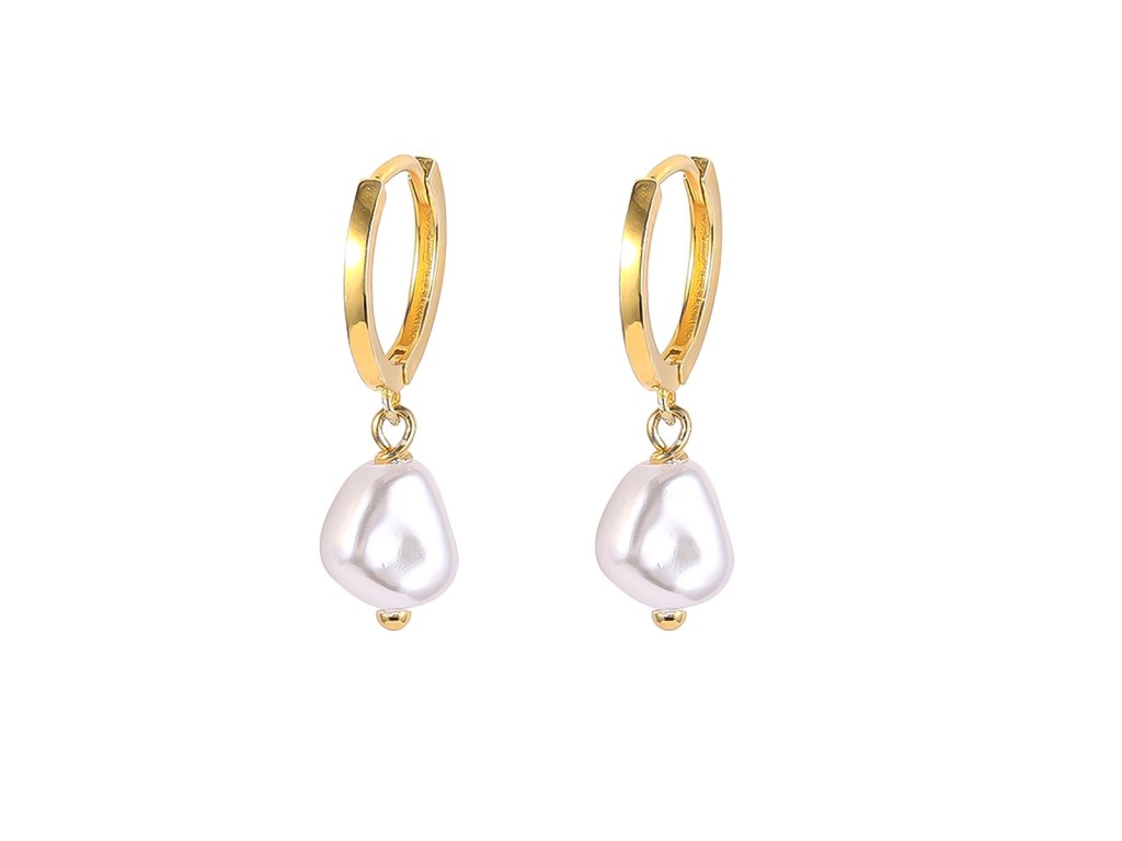 Tyto krásné zlacené náušnice ze stříbra 925/1000 zaujmou minimalistickým designem a jemně zavěšenou syntetickou perlou nepravidelného tvaru. Hladký zlatý kruh působí čistě a moderně, zatímco perla dodává šperku přirozenou měkkost a nadčasovou eleganci.