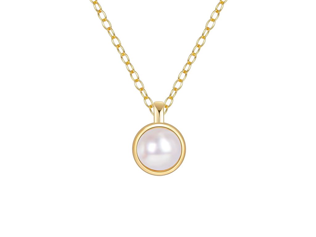 Zlacený náhrdelník ze stříbra 925 zdobí kulatá perla usazená v hladkém zlatém lůžku, které podtrhuje její přirozený lesk a jemnou krásu. Perla je symbolem ženskosti, elegance a harmonie, zatímco jednoduché linie šperku dodávají moderní a čistý vzhled.
