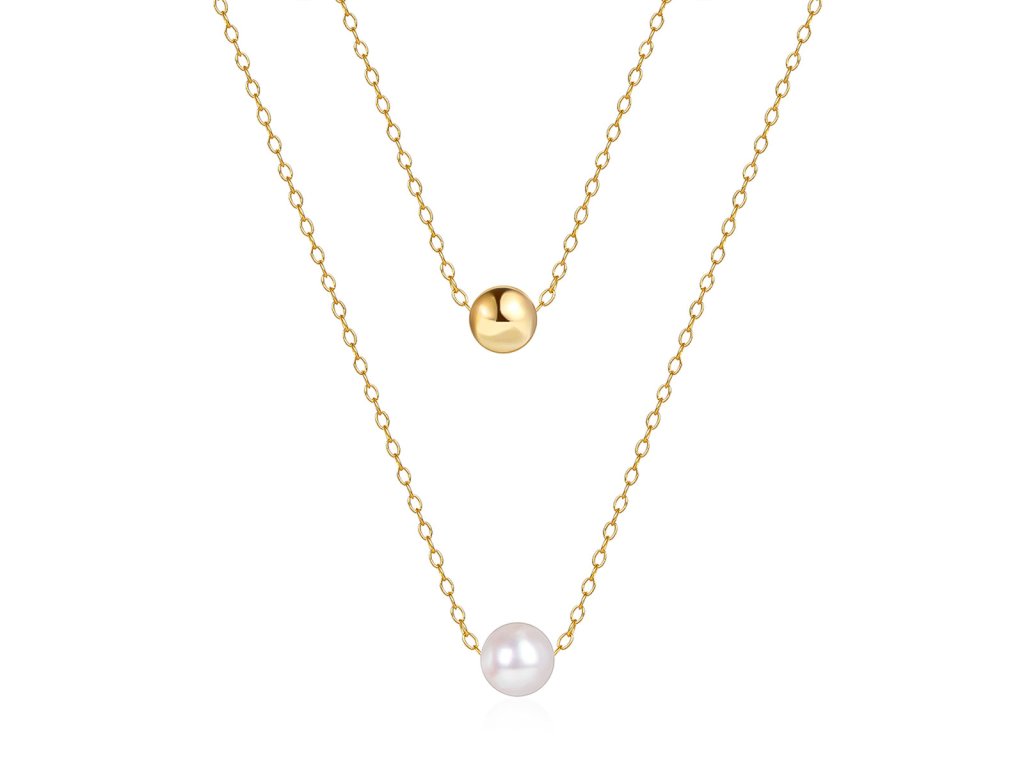 Zlacený náhrdelník ze stříbra 925 je tvořen dvěma jemnými řetízky, které vytváří moderní vrstvený vzhled. Kratší řetízek zdobí lesklá zlatá kulička, zatímco delší nese něžnou perlu s přirozeným leskem. Kombinace hladkého kovu a perly dodává šperku eleganci, lehkost a nadčasový charakter.